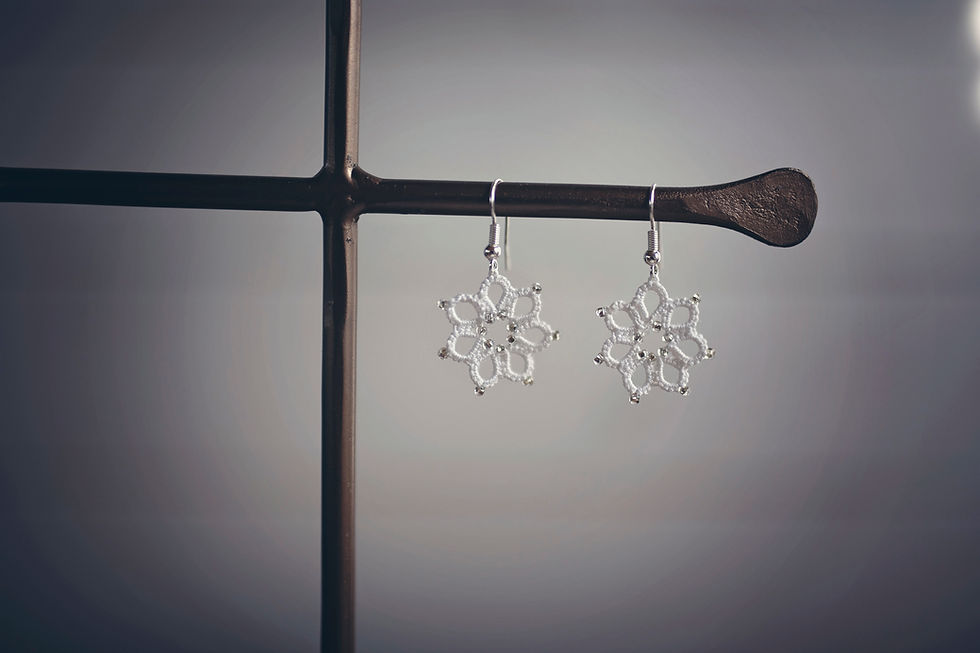 This beautifully delicate old lace craft, developed in the 19th century from netting techniques, creates stunning jewellery out of cotton thread and glass beads.